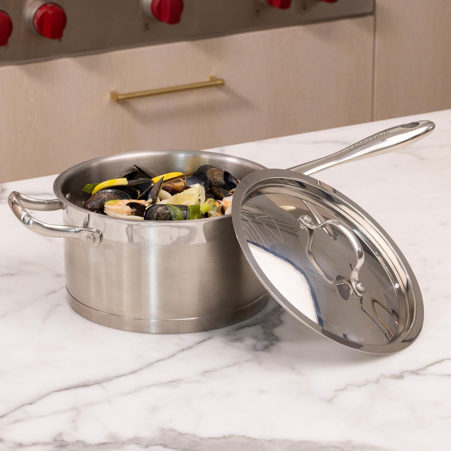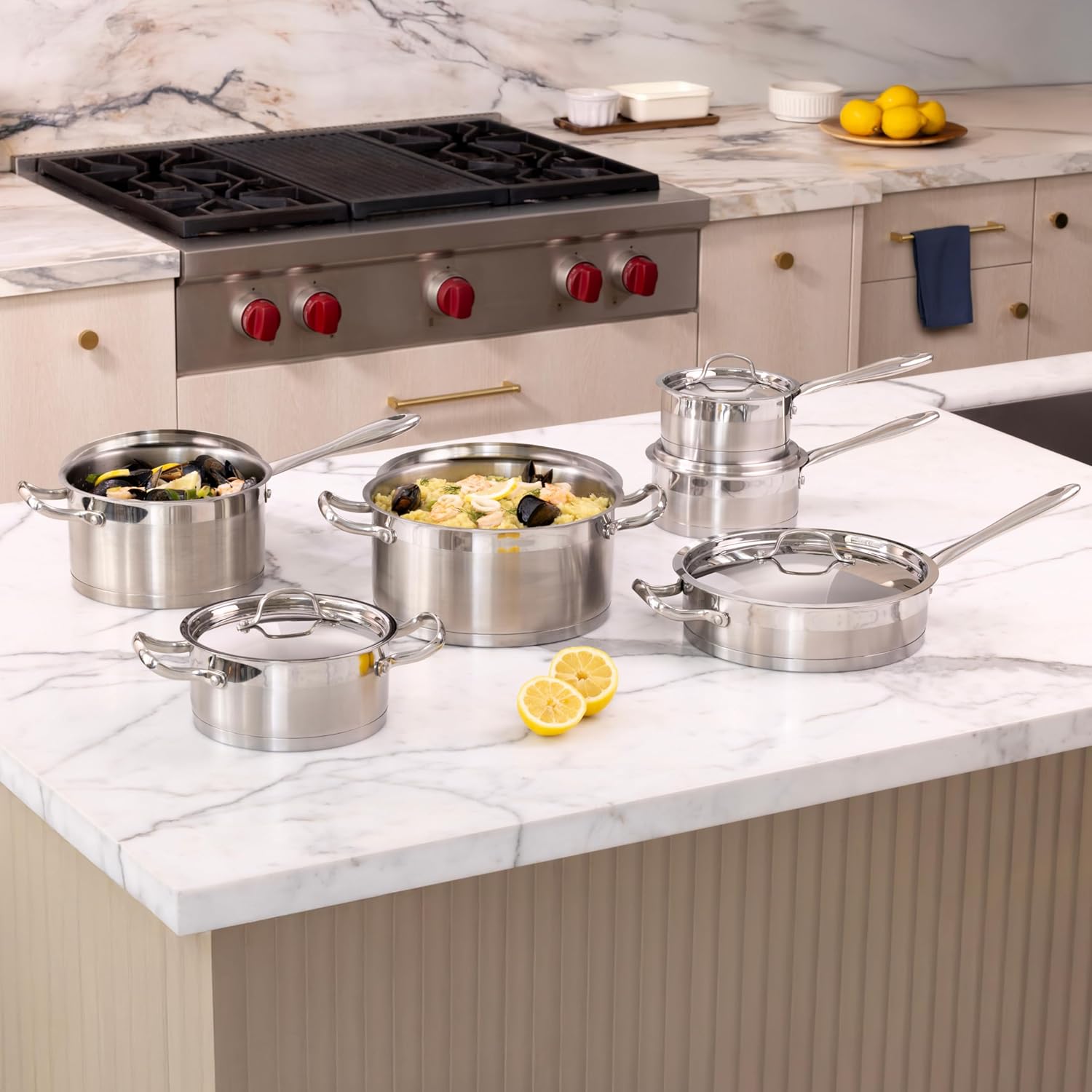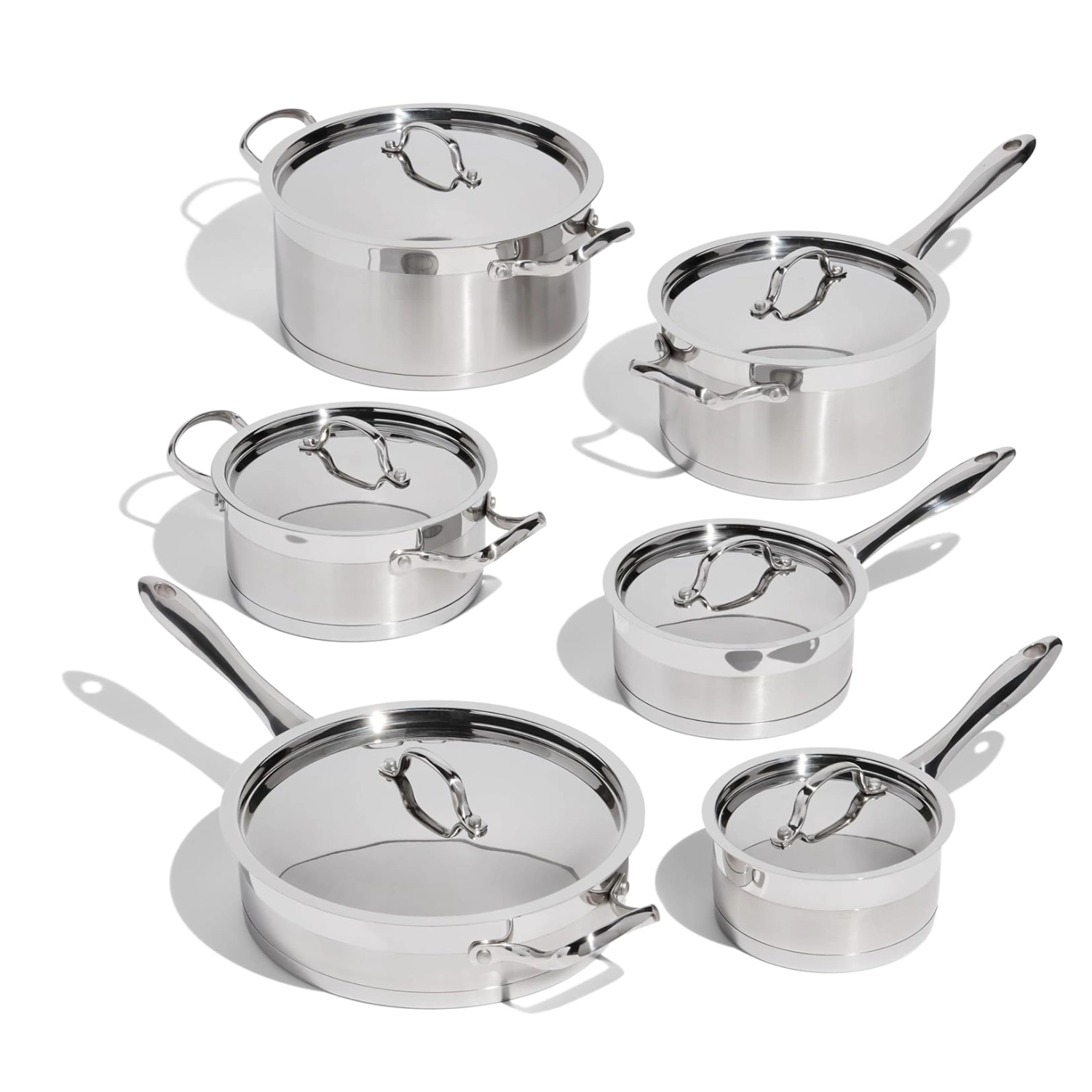 Designed for convenience and safety, the cookware features ergonomic, heat-resistant handles that provide a comfortable and secure grip during cooking. Tight-fitting lids help lock in moisture, flavor, and nutrients, improving cooking efficiency while reducing energy use. This stainless steel cookware set is compatible with gas, electric, ceramic, and induction cooktops, offering flexibility for all kitchens. Easy to clean and dishwasher safe, it saves time on maintenance and retains its polished appearance even after repeated use. Perfect for home cooks and culinary enthusiasts alike, this 12-piece cookware set combines functionality, elegance, and reliability to elevate your everyday cooking experience.