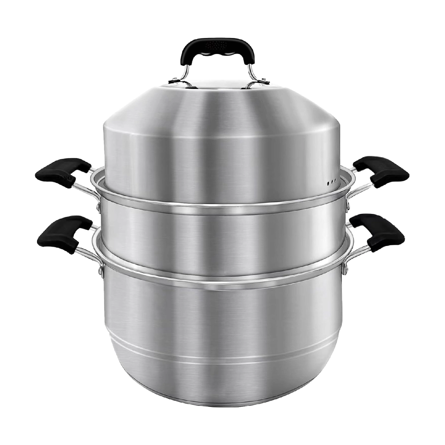Designed for convenience and safety, this stainless steel steamer pot features sturdy side handles for easy lifting and transportation. The non-reactive material ensures that flavors remain pure, while the wide base allows stable placement on various stovetops. Perfect for everyday home cooking, healthy meal prep, or entertaining, this 2-tier steamer pot is suitable for a variety of cuisines and recipes. Combining durability, practicality, and efficient design, this stainless steel steamer pot is an essential addition to any kitchen, making steaming, boiling, and multi-layer cooking simple, fast, and enjoyable.