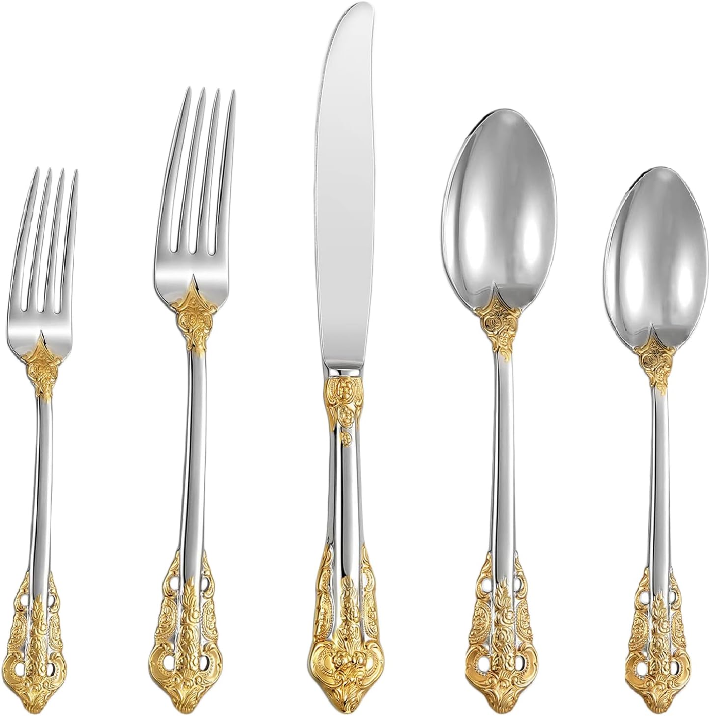 Enhance your dining table with this Silver & Gold 18/10 Stainless Steel 20-Piece Flatware Set, designed to combine timeless elegance with premium quality. Crafted from high-grade 18/10 stainless steel, this cutlery set offers superior resistance to rust, corrosion, and tarnishing, ensuring long-lasting performance for everyday meals and special occasions. The refined silver and gold two-tone finish adds a sophisticated touch, making it suitable for modern homes, formal dining, restaurants, and festive gatherings. Designed to serve multiple place settings, the set includes essential forks, spoons, and knives, providing a complete and versatile tableware solution.